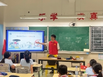 “严老师,毒品是什么?”“制作一点点毒品会违法吗?”“如果运输毒品呢?”……近日,这群普法志愿者在温州大学城附属学校开课,学校40余名四年级的同学们通过自主报名的形式来到教室报到,集体体验由 “同行法治”青少年法治教育实践团、温州大学青少年法治教育协会为他们量身定制的国际禁毒日防毒禁毒普法活动,志愿者严宗翔作为普法讲师,时常面对同学们“十万个为什么”式的各种提问。