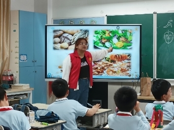 图5:实践团在温州大学城附属学校开展中国学生营养日食品安全普法活动。