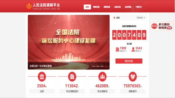 据最高人民法院消息,经过八个多月的建设和试运行工作,“多元解纷案例库”正式上线并向社会公众开放,供国家机关、社会团体、调解组织和社会公众查询、使用、学习、研究。社会公众可以登录网址http://dyjfalk.court.gov.cn访问多元解纷案例库,已经注册人民法院调解平台的用户还可以通过调解平台一键登录多元解纷案例库。