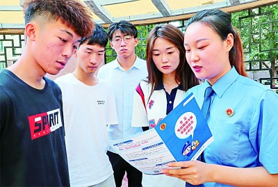 河北省秦皇岛市海港区人民检察院检察干警为大学生普及预防电信诈骗和防范校园贷的相关法律知识。新华社发