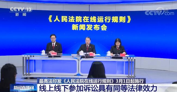 最高人民法院今天(2月22日)印发《人民法院在线运行规则》,自3月1日起施行,规则明确经当事人同意,民事诉讼活动可以通过信息网络平台在线进行,与线下诉讼活动具有同等法律效力。