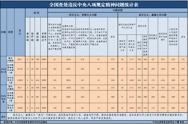 据中央纪委国家监委消息,2月25日,中央纪委国家监委公布了2022年1月全国查处违反中央八项规定精神问题汇总情况。当月,全国共查处违反中央八项规定精神问题9817起,批评教育帮助和处理14705人,其中党纪政务处分10209人。这是中央纪委国家监委连续第101个月公布月报数据。