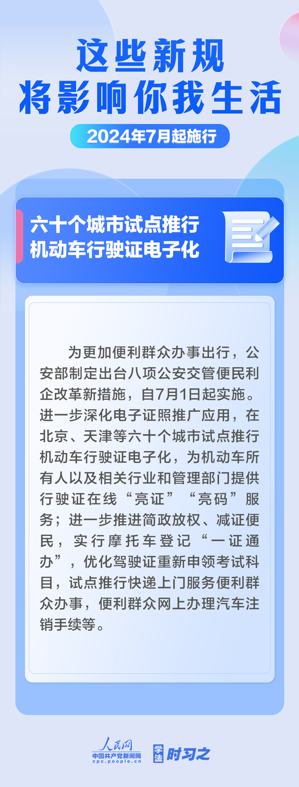 完善注册资本认缴登记制度;禁止“大数据杀熟”规范“自动续费”;在六十个城市试点推行机动车行驶证电子化……7月起,这些新规施行,将影响你我生活。