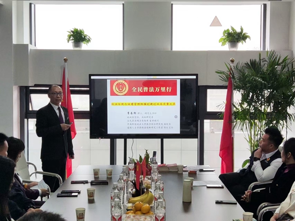 肖涵主任做《全民普法万里行实施推行及法商会赋能行业高质量发展》的主题分享,以“全民普法万里行实施方案及执行、法商会赋能行业高质量发展具体措施、大法商管理体系‘行业法商’、实施‘五位一体’大法务、法商管理人才综合素能提升”等方面做了深入浅出、落地执行的详细措施,为执行团队的总体工作推进指明了方向及行之有效的办法。