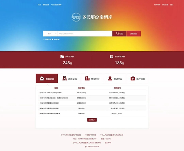 据最高人民法院消息,经过八个多月的建设和试运行工作,“多元解纷案例库”正式上线并向社会公众开放,供国家机关、社会团体、调解组织和社会公众查询、使用、学习、研究。社会公众可以登录网址http://dyjfalk.court.gov.cn访问多元解纷案例库,已经注册人民法院调解平台的用户还可以通过调解平台一键登录多元解纷案例库。