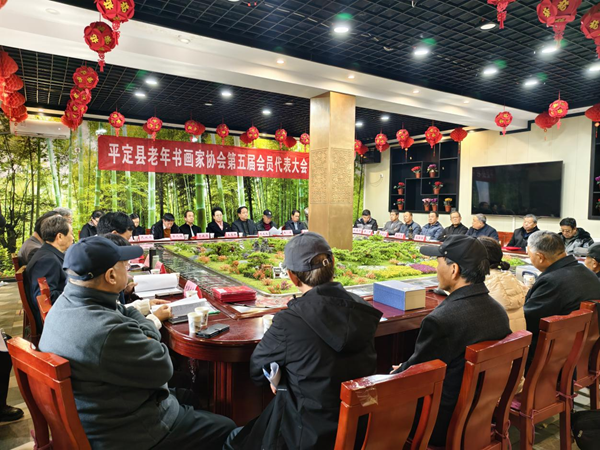 2024年11月23日,平定县老年书画家协会第五届会员代表大会在冠嘉山庄会议室举行。县政协副主席刘文成、市老年书画家协会主席王惠卿、县老年书画家协会主席王森、市美术书法创作研究院院长贾庭庠、县书法家协会主席霍续军、阳泉师专原副校长要守文、著名书画艺术家郭九麟出席会议。联合支部书记韩建华主持召开。平定县老年书画协会相关领导及平定县老年书画家协会理事等五十多位会员代表参加会议。